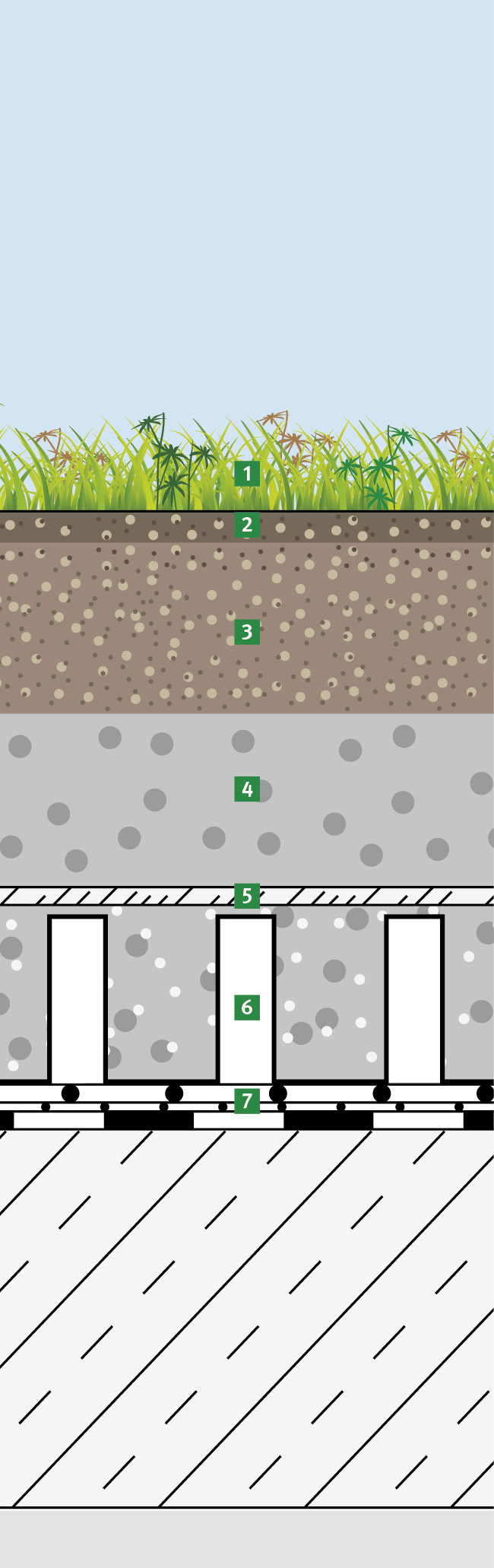 Базовый слой из гравия 0–32 мм (высота минимум 150 мм)